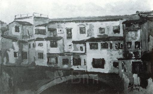 Il ponte vecchio - 1958 - olio su tavola
