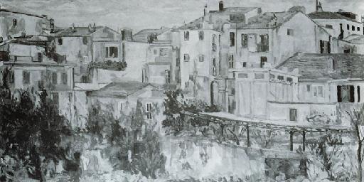 Case su Caruggio Ciarlo - 1967 - olio su tela - 100x50