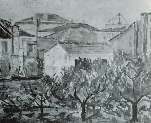Case e tetti - 1974 - olio su tela - 50x40